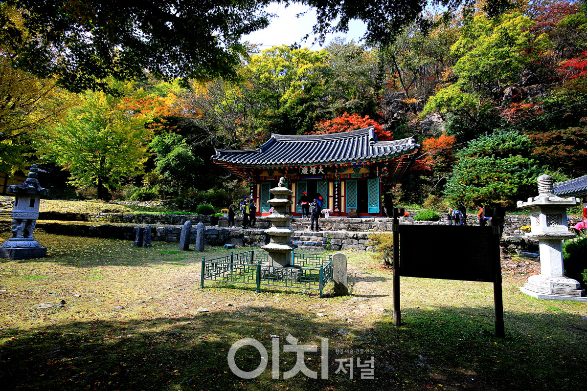 숲속 산책로 옆길을 따라 오르자 고요의 정적이 흐르는 강천사가 나온다. 오래 세월의 풍상으로 형체가 희미한 부도전은 천년 세월을 거슬러 기억 저편에 자리를 지키고 있다