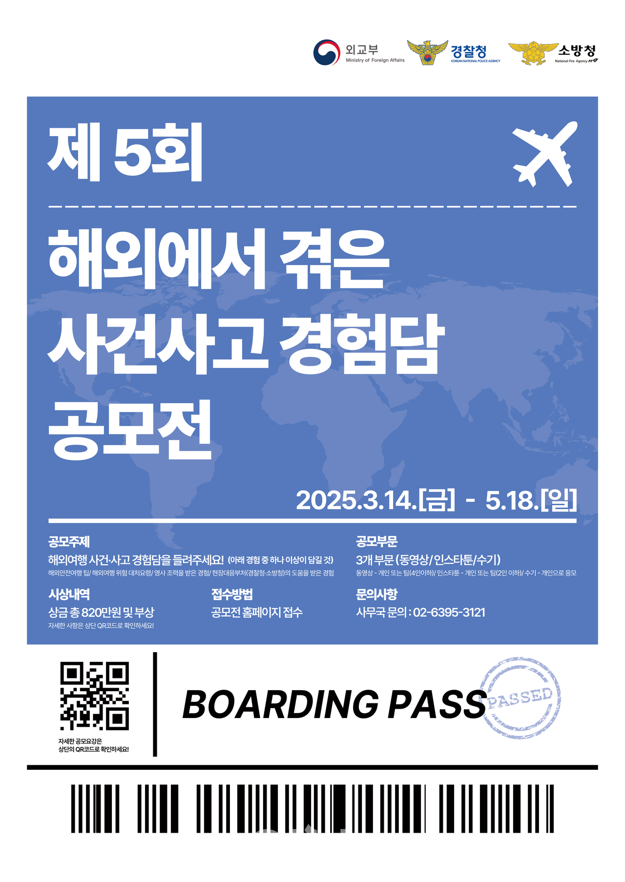 해외에서의 특별한 경험을 나누는 장이 열린다. 외교부, 경찰청, 소방청이 공동 주최하는 ‘제5회 해외에서 겪은 사건사고 경험담 공모전’이 오는 3월 14일부터 5월 18일까지 접수를 받는다. 이번 공모전은 해외여행 중 겪은 사건과 사고 경험을 공유하고, 이를 통해 국민들의 해외 안전여행에 대한 경각심을 높이기 위해 마련되었다.