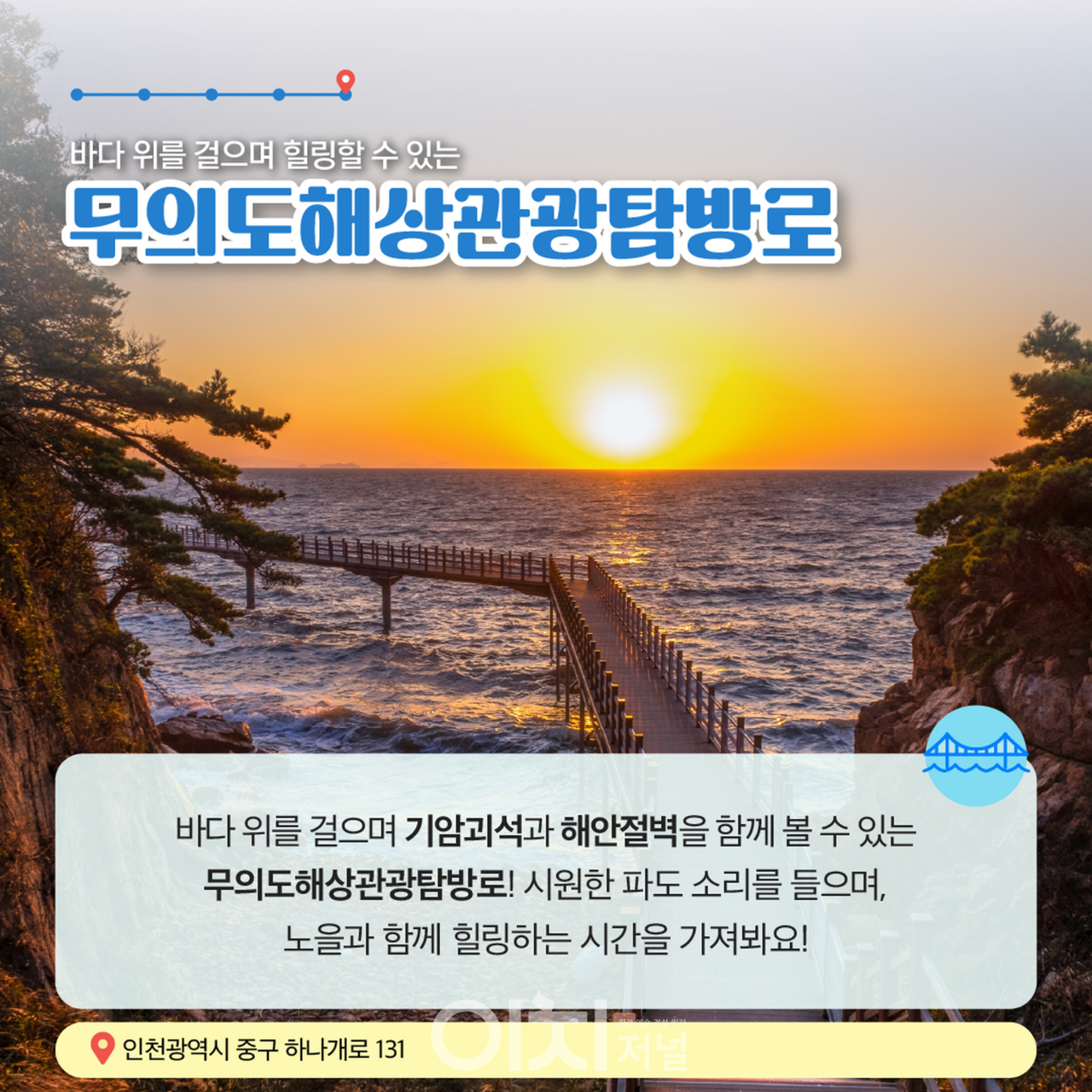 파도가 들이치는 순간, 셔터가 눌렸다. 물안개 낀 새벽 무렵부터 장노출 촬영을 위해 삼각대를 세운 사진가들이 하나둘 모여드는 그곳. 섬과 섬 사이 바다 위에 길게 뻗은 해상관광탐방로는 어느새 사진작가들의 성지로 불리고 있다. 인천 무의도에 위치한 ‘포내어촌체험마을’은 이제 단순한 체험마을 그 이상의 의미를 지닌다. 자연과 사람, 그리고 렌즈가 어우러지는 서해의 감성 한복판이다.