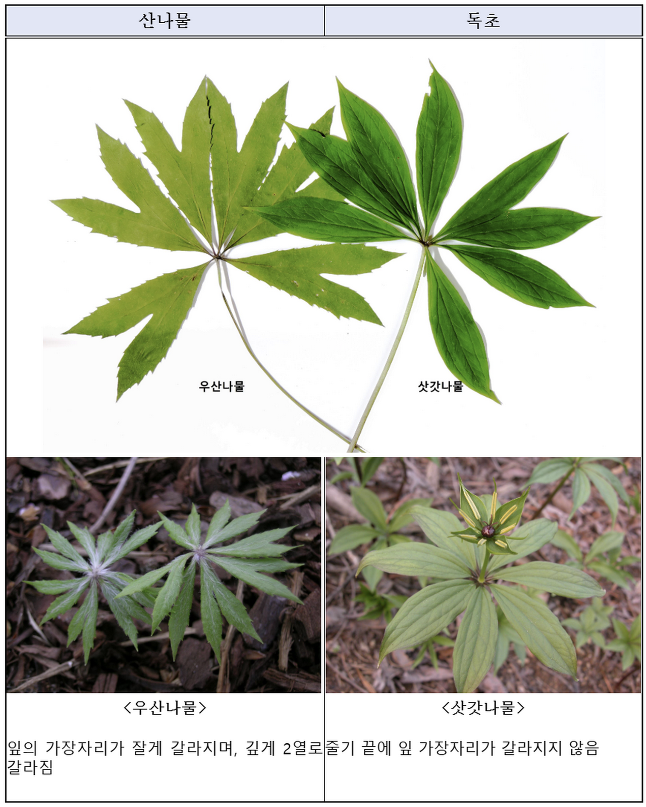 이 외에도 우산나물과 혼동되는 ‘삿갓나물’, 먹을 수 있는 머위와 구별해야 하는 ‘털머위’ 등 외형상 비슷한 식물이 수두룩하다.