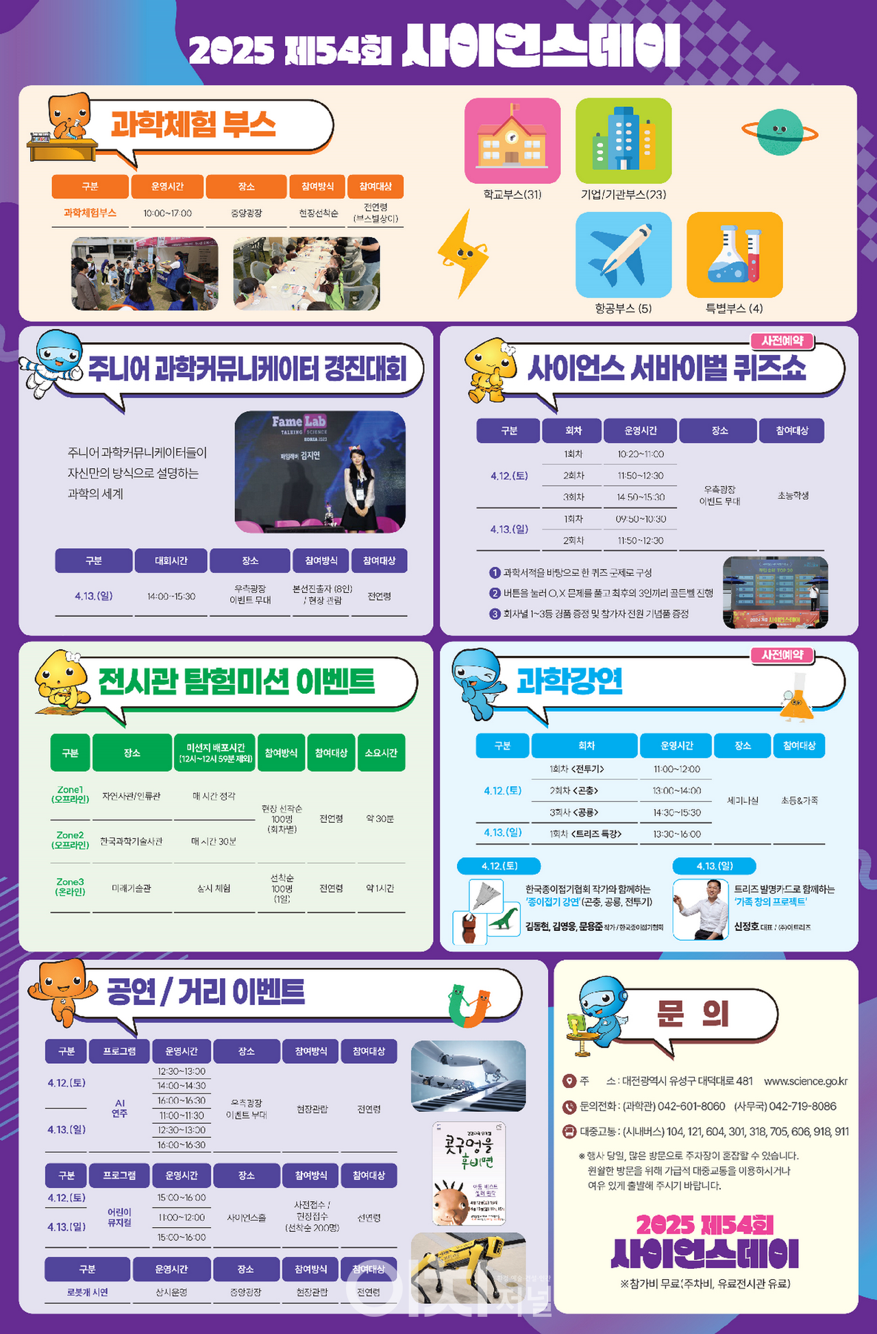 ‘놀다 보면 과학자’가 되는 진짜 과학놀이 한마당, 2025 제54회 과학의 날(사이언스데이)이 4월 12일부터 13일까지 대전 국립중앙과학관에서 열린다.