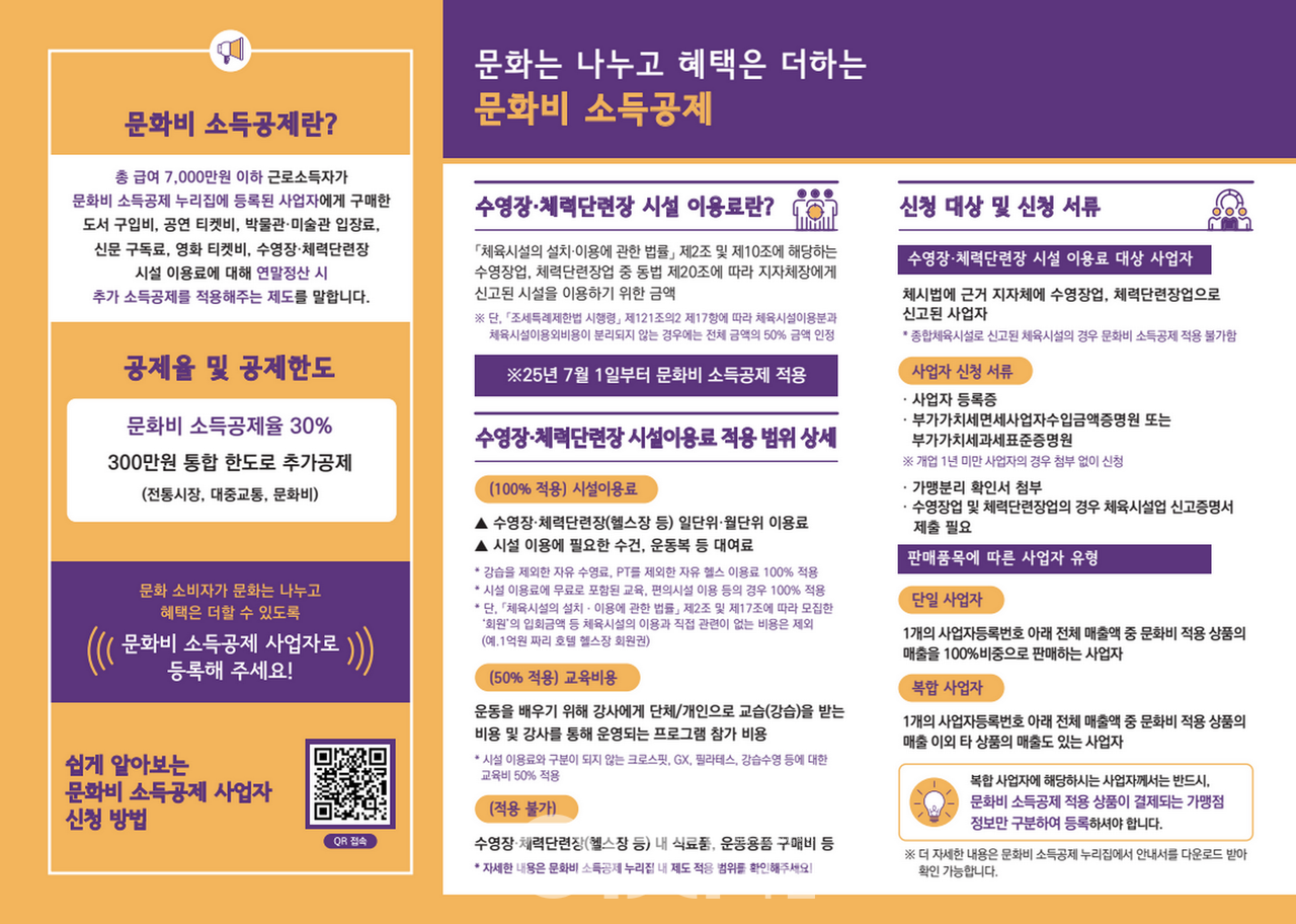 이번 제도는 그동안 도서, 공연, 박물관, 미술관, 영화 등 문화 분야에 국한됐던 소득공제 범위를 체력단련장(헬스장)과 수영장으로 확대하는 것으로, 연 소득 7000만 원 이하의 근로소득자는 해당 시설 이용 시 연간 최대 300만 원 한도 내에서 30% 소득공제를 적용받을 수 있다.