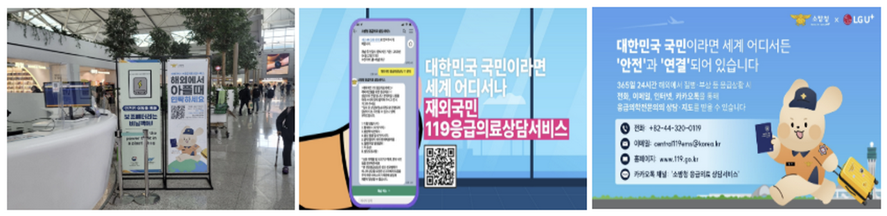 캠페인 핵심은 ‘해외에서 우리 국민이 질병에 걸리거나 다쳤을 때, 즉시 365일 24시간 응급의학전문의에게 상담 받을 수 있다’는 점을 여행객에게 알리는 데 있다. 단편적 홍보에서 벗어나 정보 수혜자 중심으로 정책을 전파하는 방식이다. 소방청은 LG유플러스와 협력해 인천·김포·김해공항 로밍센터에 홍보 책자를 비치하고, 전광판을 통해 캠페인 이미지를 상시 송출하고 있다.