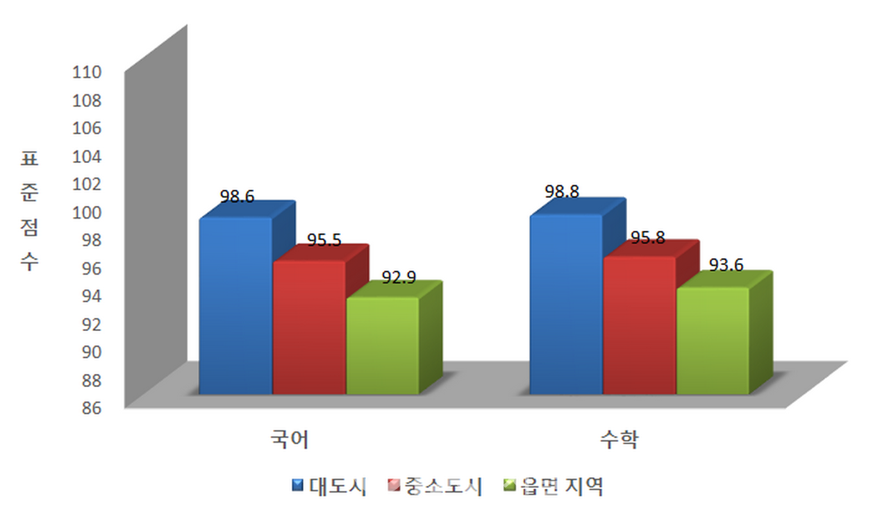 지역별로는 경기 지역이 응시자 수 79,520명으로 전국 최다였고, 세종은 3,243명으로 가장 적었다. 대도시에 속한 학교들의 응시자 수는 119,750명으로 중소도시(130,959명)보다는 적었지만, 읍면 지역(40,426명)보다는 월등히 많았다. 지역 간 교육 인프라 격차와 학생 수의 불균형도 수능 구조에 영향을 미치고 있다.