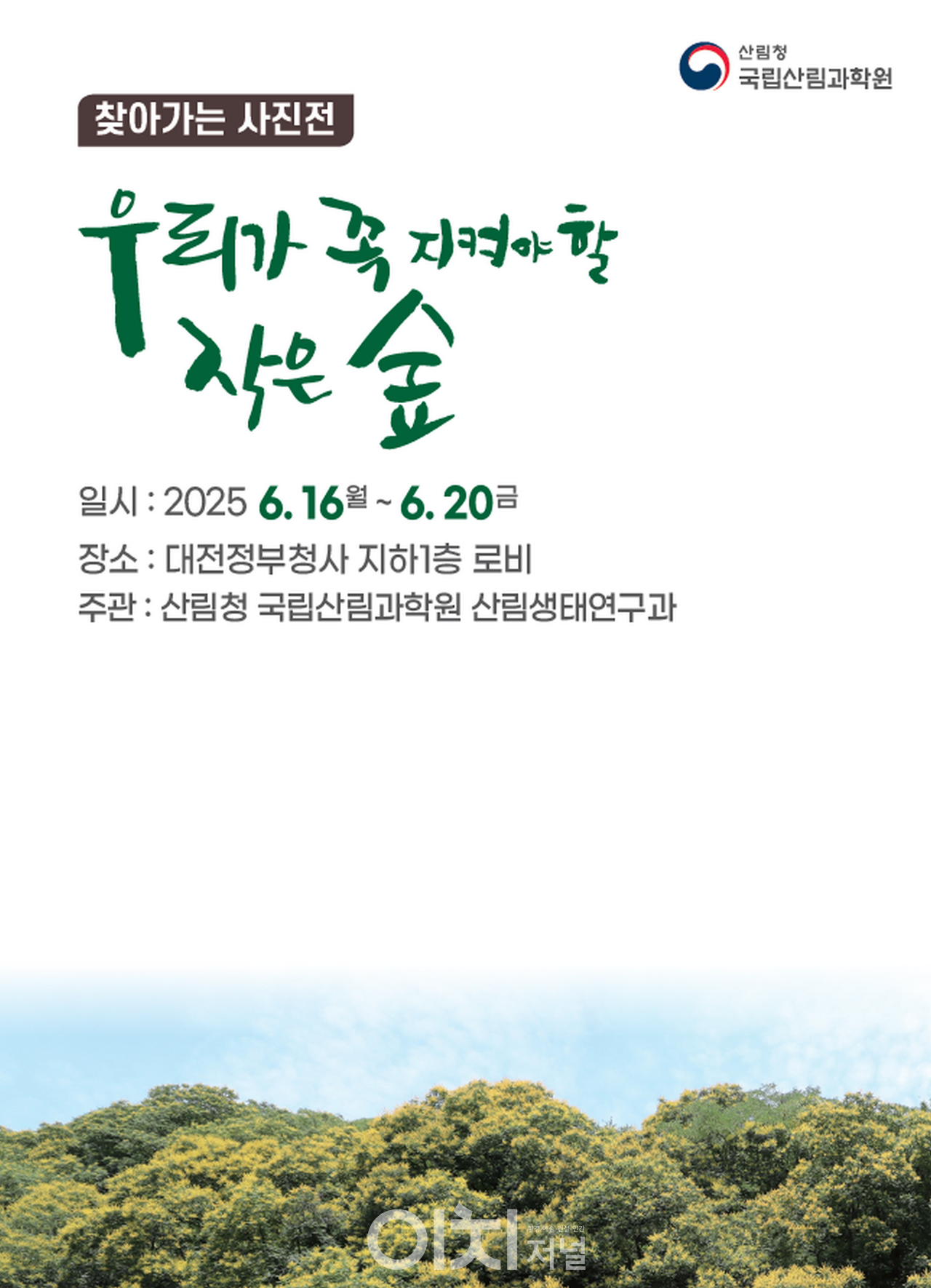 땅 한 자락, 숲 한 모퉁이에도 수천 년 생명이 숨 쉰다. 사람들의 발길이 닿지 않는 그 작은 숲들이 이제 시민 곁으로 찾아왔다. 국립산림과학원이 마련한 '찾아가는 사진전 – 우리가 꼭 지켜야 할 작은 숲'이 6월 16일부터 대전과 세종을 순회하며 시작됐다.