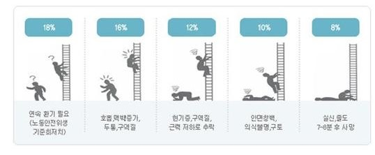 6) 산소 농도가 4% 이하이면 단 몇분도 살 수 없다.
