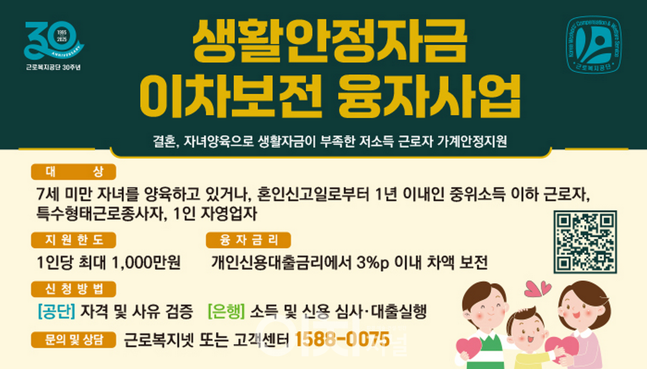 이차보전 융자사업은 근로복지공단이 은행과 협업해 시행하며, 공단은 2025년 말까지 약 2만 명에게 총 30억 원 규모의 이자를 지원할 계획이다. 대상은 고용보험이나 산재보험에 3개월 이상 가입한 근로자와 1인 자영업자이며, 신청은 혼례비 또는 7세 미만 자녀를 둔 양육비 중 하나로 가능하다.