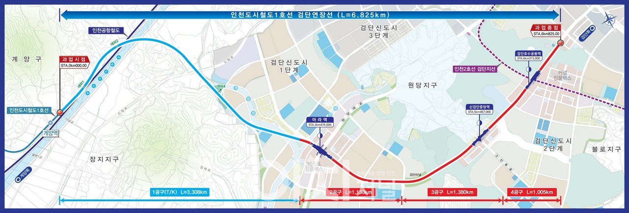 검단연장선은 인천 계양역에서 출발해 아라역, 신검단중앙역, 검단호수공원역까지 이어지는 총 6.8km 구간. 2019년 12월 착공해 5년 만에 마침내 개통을 맞이하게 됐다. 총 사업비는 약 7,900억 원. 계양역에서는 인천 1호선과 공항철도를 동시에 환승할 수 있어 서울 도심과 공항 접근성 모두 개선된다.