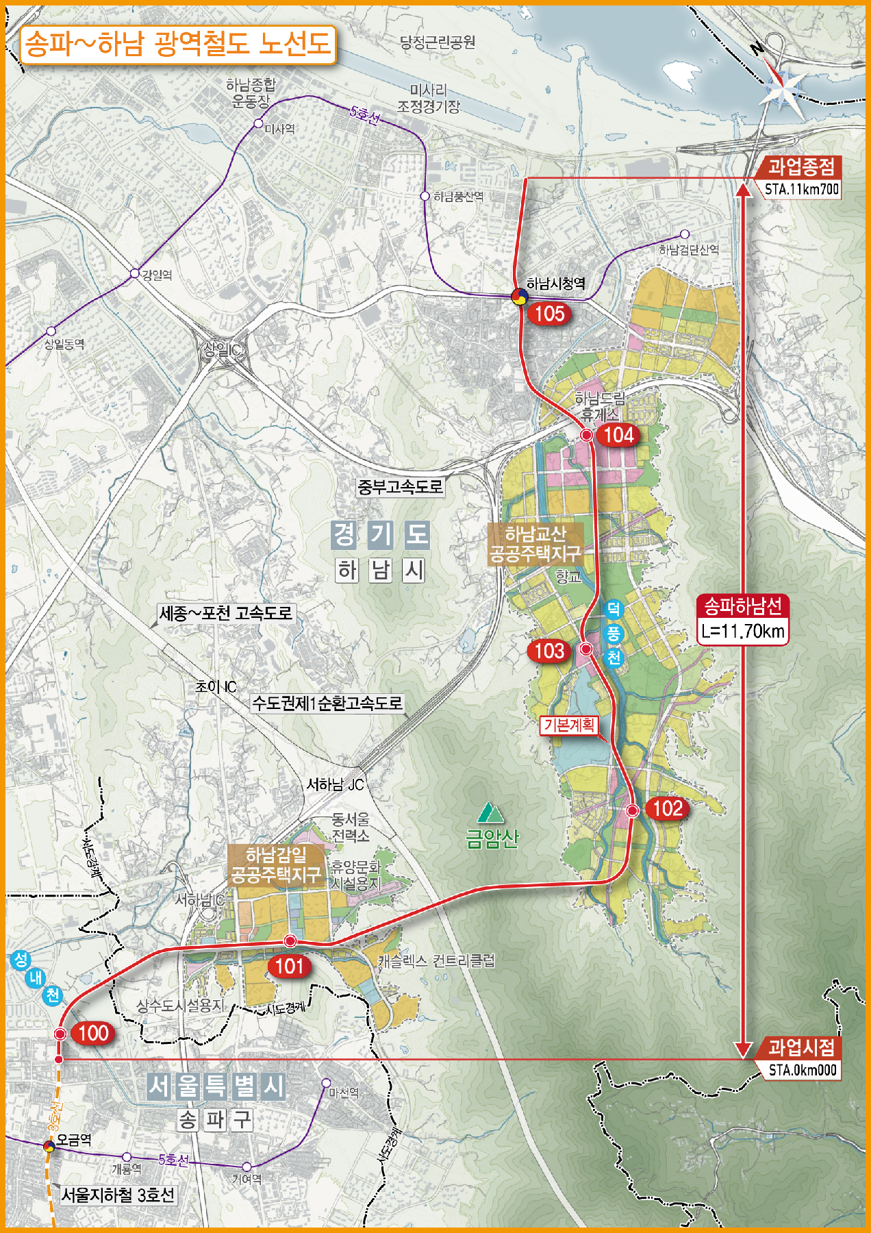 이번에 승인된 연장 노선은 기존 3호선 종점인 오금역에서 하남시청역까지 총 11.7㎞를 연장하는 것으로, 정거장 6곳이 신설된다. 정차역은 서울 송파구 방이동 1곳과 하남 감일·교산지구 내 5곳으로 구성되며, 서울지하철 5호선, 8호선, 9호선과의 환승은 물론 GTX, SRT 등 수도권 핵심 철도망과도 유기적으로 연결된다.