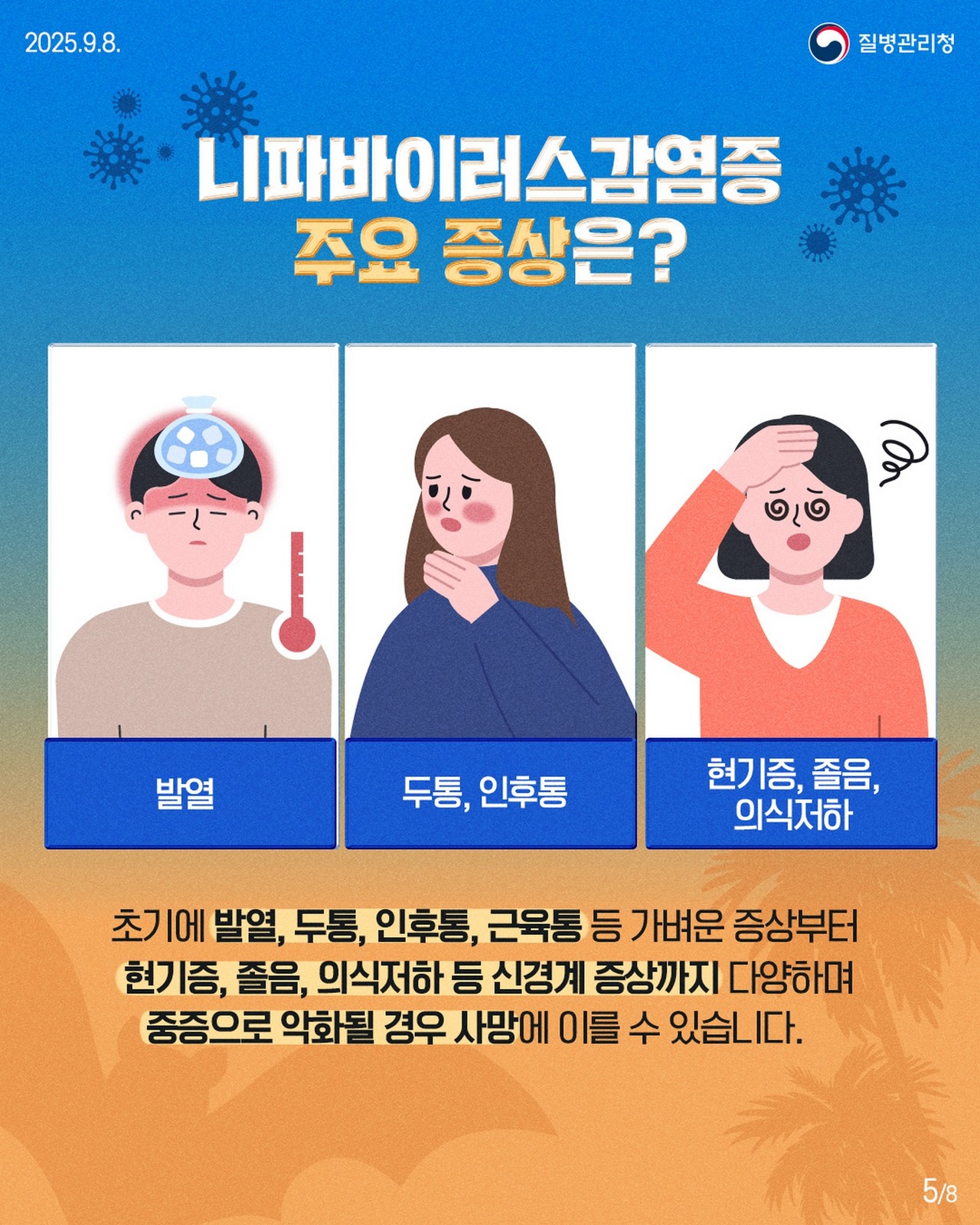 국내에서는 아직 환자가 보고되지 않았지만, 질병관리청은 잠복기(평균 4~14일)를 거쳐 발열, 두통, 근육통 같은 초기 증상에서 신경계 이상과 의식 저하로 악화되는 점을 고려해 긴급 관리 필요성을 강조했다. 임승관 청장은 “이번 지정은 해외 발생 감염병의 국내 유입 위험을 선제적으로 대비하기 위한 조치”라며 “코로나19 경험을 토대로 신종 감염병 대응체계를 더욱 강화해 나가겠다”고 밝혔다.