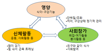 80세 이상 고령자가 많아지면서 질병보다 허약(프레일, Frail)으로 돌봄상태가 되므로 개인은 허약을 예방하면서 건강하게 살도록 노력하여야 한다. 프레일 예방의 열쇠는 다음과 같다.