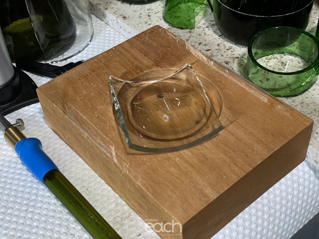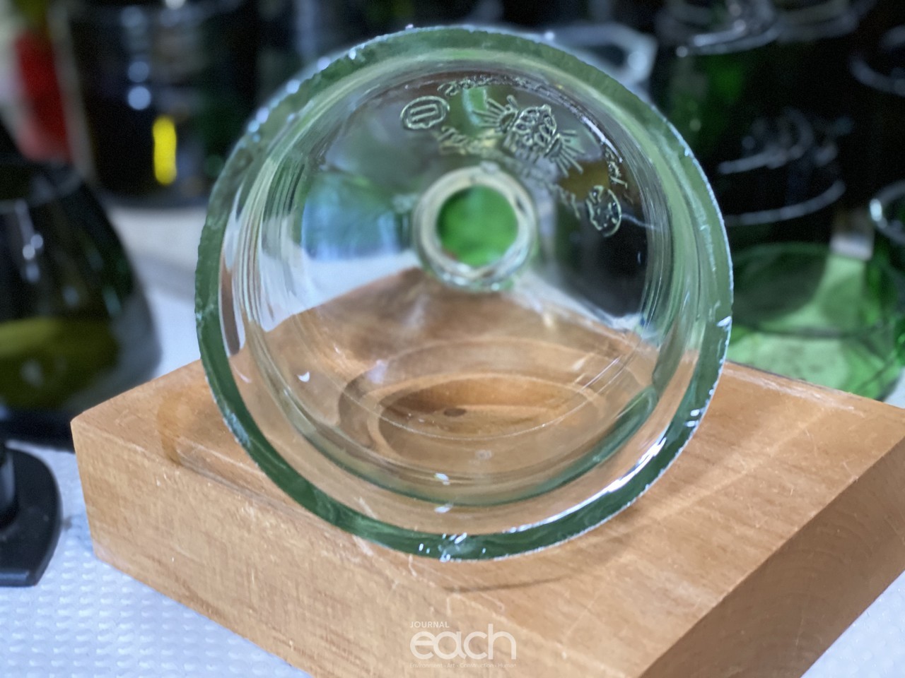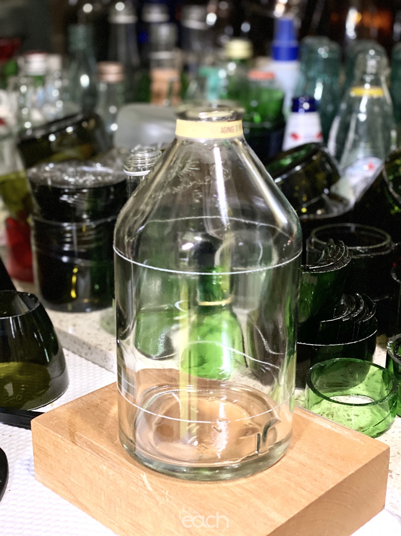 퓨징 작업의 재료로 사용하고 남은 유리병의 상단부와 하단부는 다른 방법으로 활용을 하게 된다.