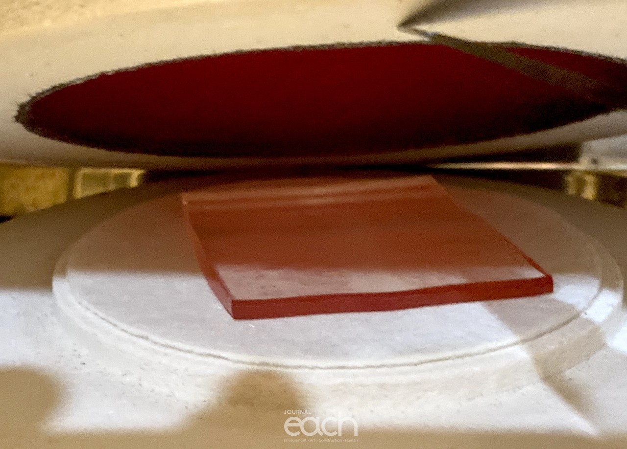 사진과 같은 결과를 얻게 되면, 전자레인지를 이용해서 평평하게 펼쳐주는 과정을 거쳐야 한다. 이때, 전자레인지 안에 쥬얼리 포트라고 하는 집열용 미니 가마를 이용하게 되며, 이 집열용 가마는 상하이에서 한국으로 공급을 하고 있다.