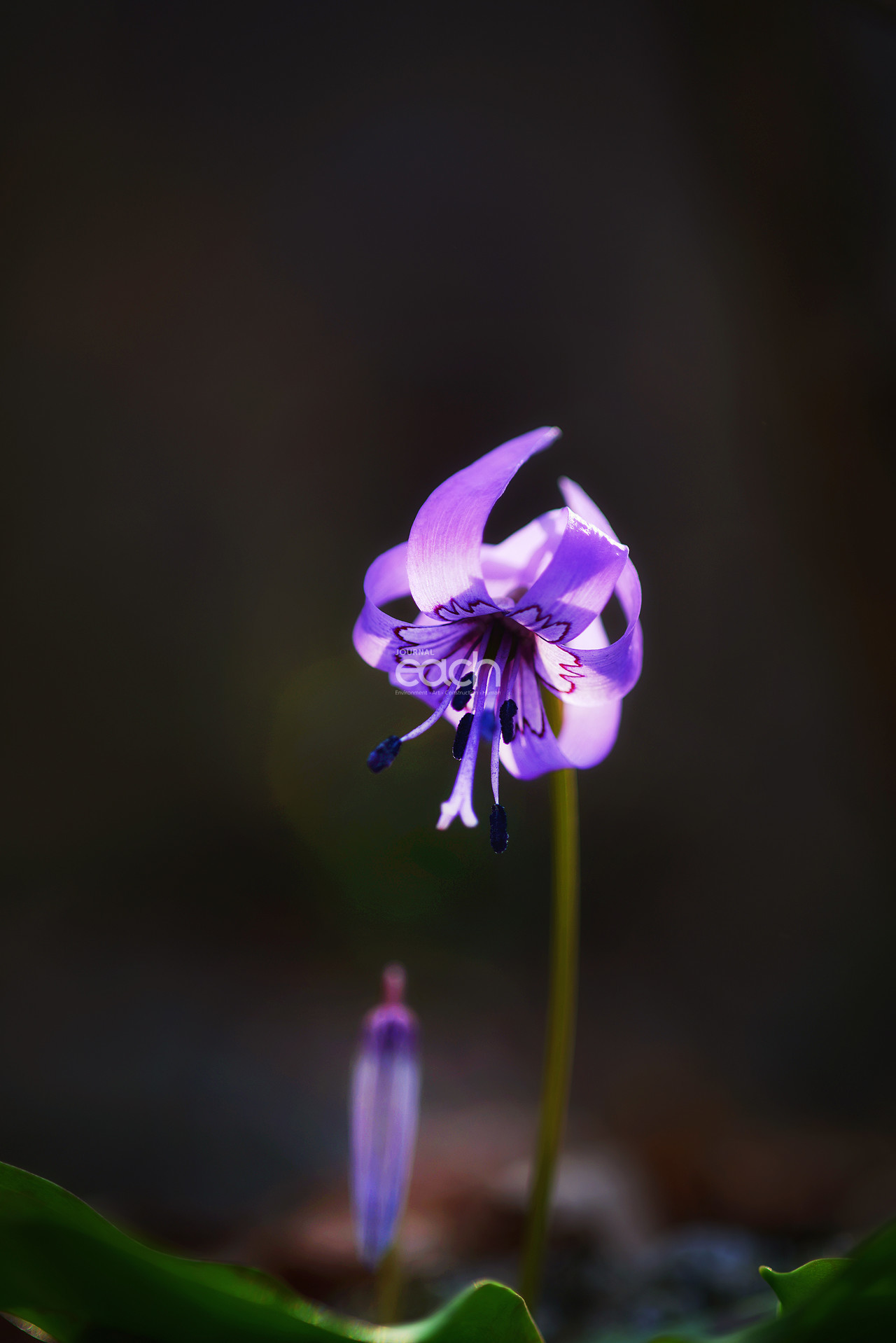 3~5월에 홍자색 또는 자주색으로 피는데 잎 사이에서 나온 꽃줄기 끝에 한 송이의 꽃이 밑을 향해 달린다.