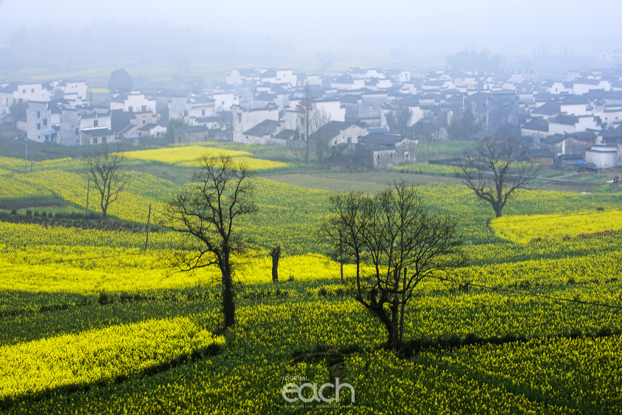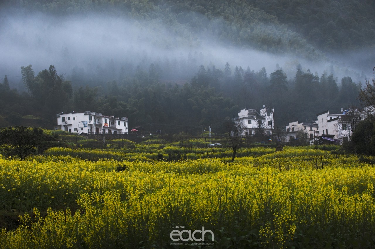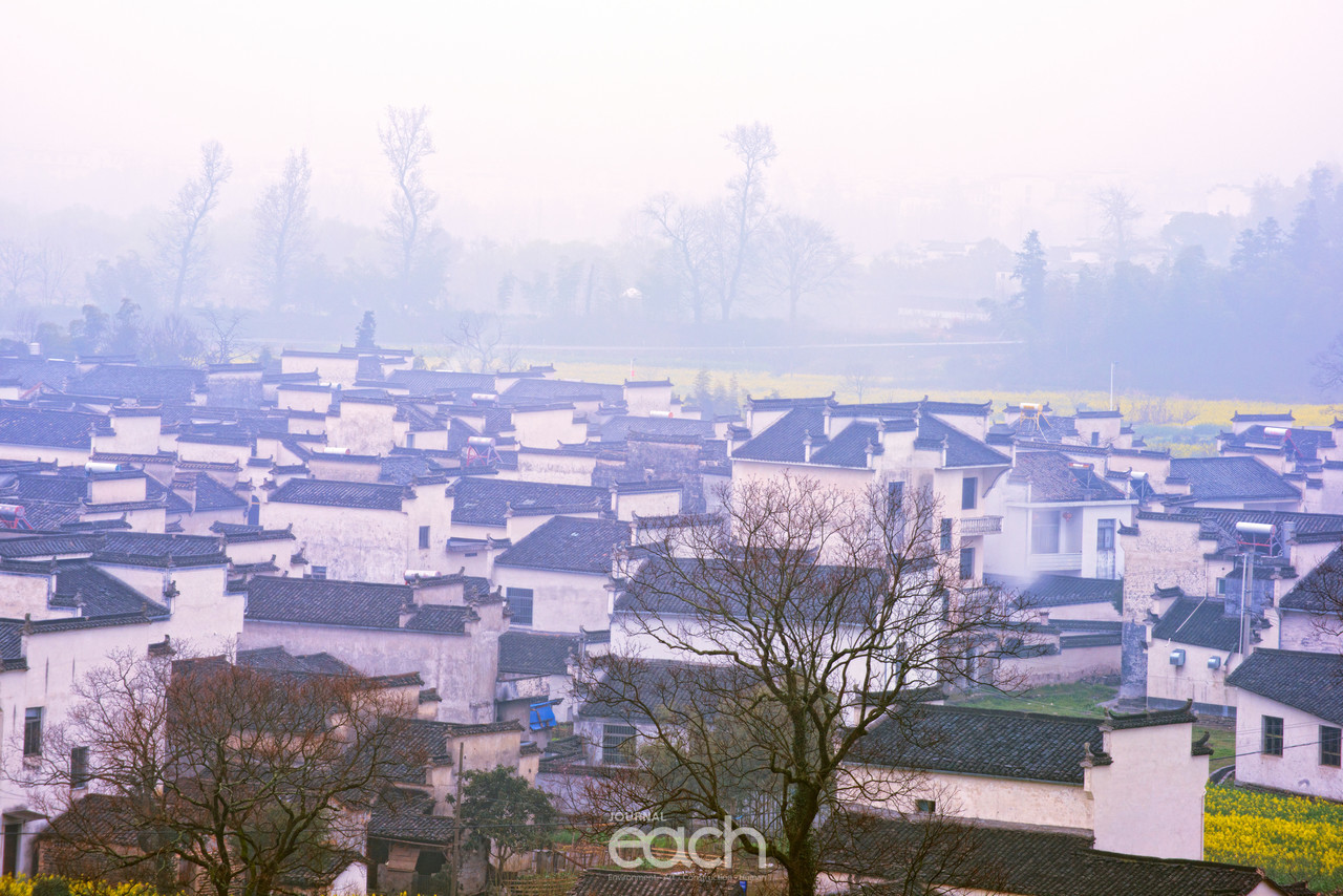 다행히 도착하자 비는 그쳤지만, 안후이(安徽) 이현(黟县) 로촌(卢村)의 이른 아침은 안개가 자욱하다. 안개 속으로 희끗희끗보이는 휘파(徽派)민가들이 유채꽃 사이사이에 줄지어 있다.