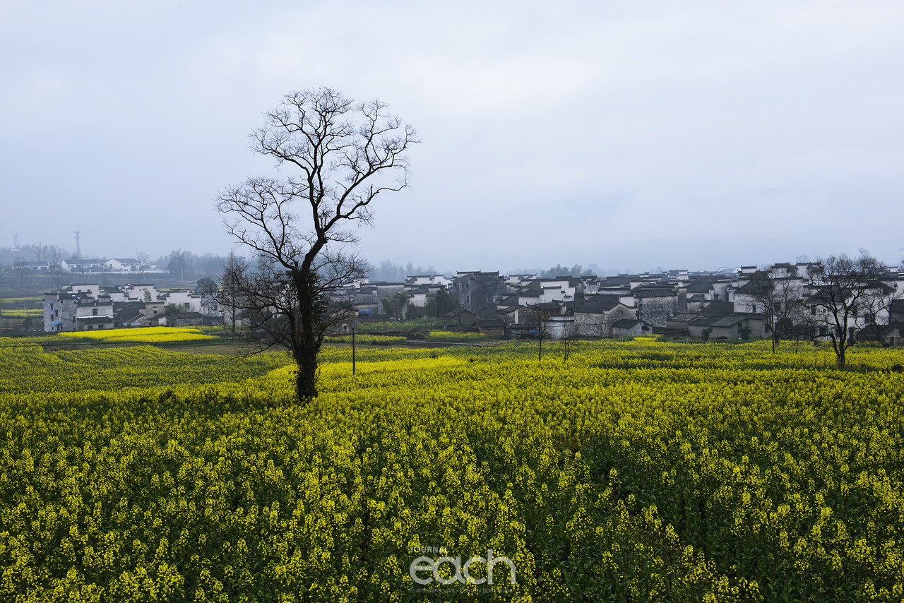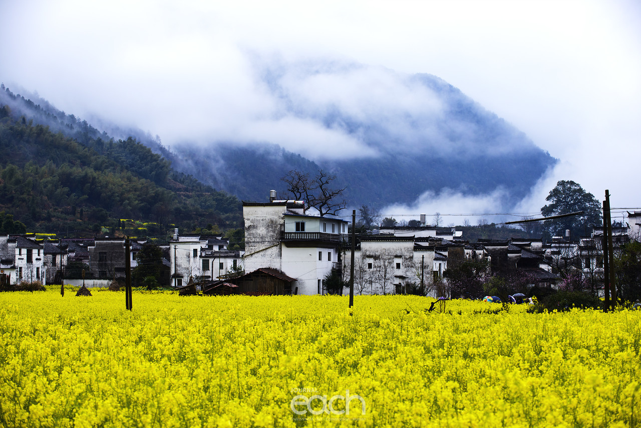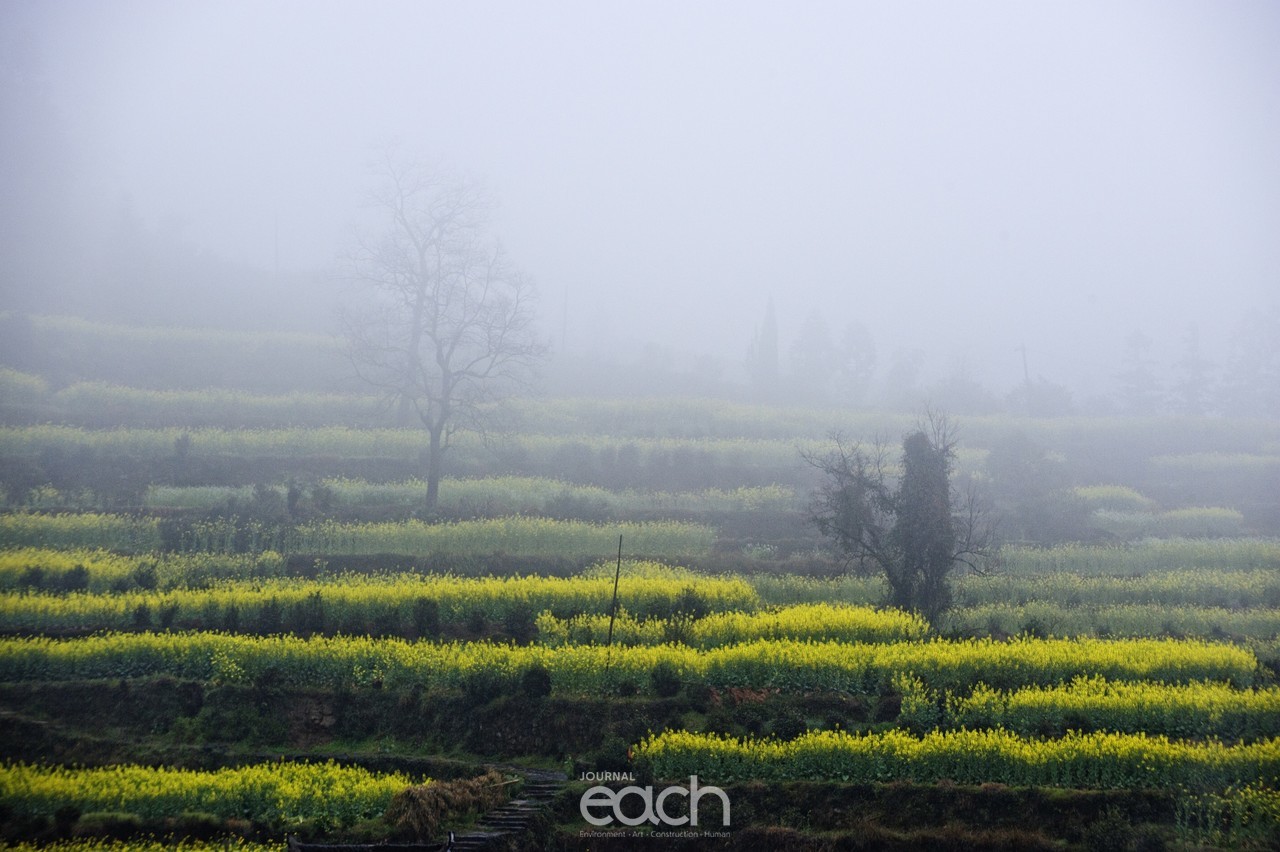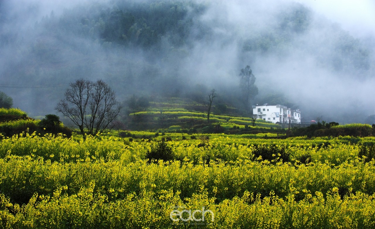 다행히 도착하자 비는 그쳤지만, 안후이(安徽) 이현(黟县) 로촌(卢村)의 이른 아침은 안개가 자욱하다. 안개 속으로 희끗희끗보이는 휘파(徽派)민가들이 유채꽃 사이사이에 줄지어 있다.