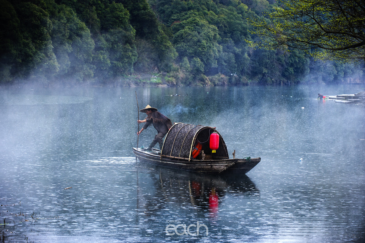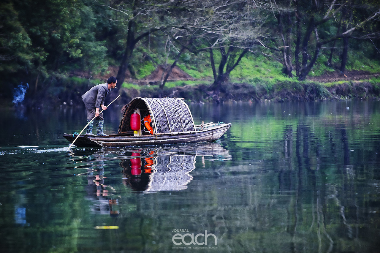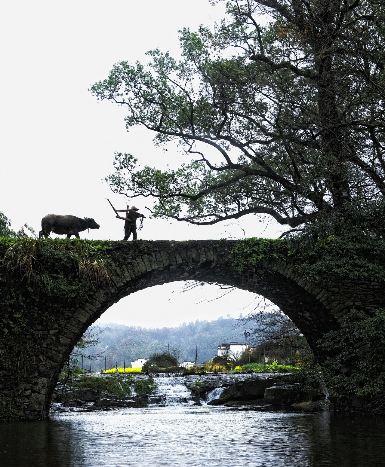 무원시내를 벗어나 이갱(李坑) 마을로 가다가 만나는 무원의 첫 명소 월량만(月亮灣). 강 중간의 조그마한 섬이 마치 초승달처럼 굽었다 해서 월량만이라 불린다. 어부가 죽배를 타고 투망 던지는 연출을 해 많은 사진가가 몰리는 지역이기도 하다.
