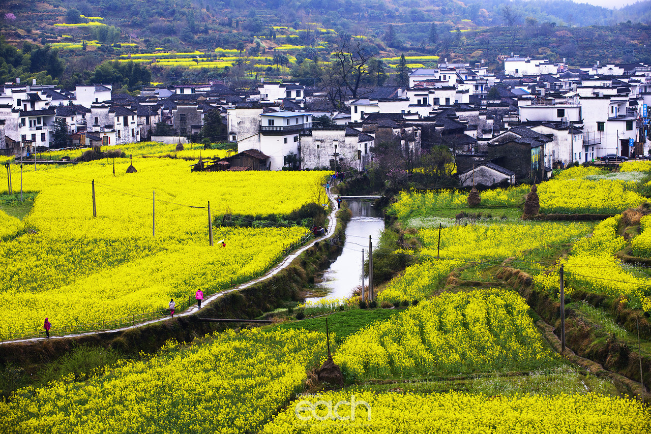 특히 중국 4대 화해(花海)로 일컬어지는 강령(江嶺) 마을은 휘주(徽州) 특유의 하얀 벽과 위로 치켜 올라간 검은 기와의 건축양식과 지어진 지 오래된 촌락이 많아 더욱더 유채의 색감을 돋보이게 한다. 무원 현청에서 약 45Km 떨어진 곳에 있는 강령 마을은 3~4월이 되면 해발 1,000m의 산으로 둘러싸인 계단식 밭에 노란 유채꽃이 가득 피어 온 마을을 유채의 바다로 만든다.