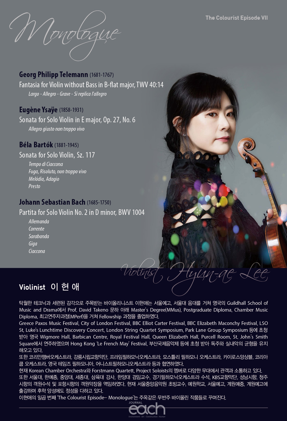 이현애의 일곱 번째 ‘The Colourist Episode- Monologue’는 주옥같은 무반주 바이올린 작품들로 꾸며진다.