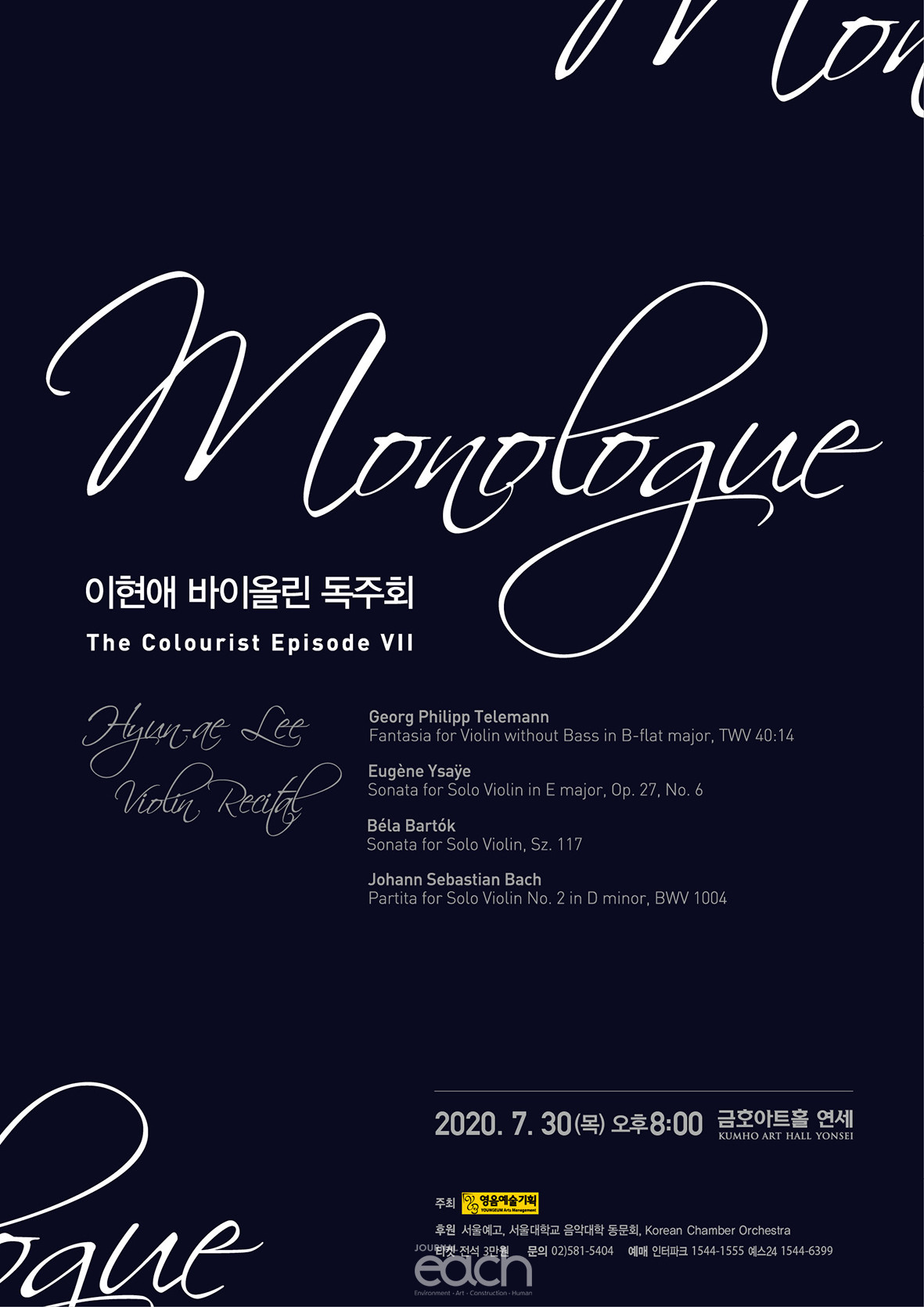 1. 일시장소 : 2020년 7월 30일(목) 오후 8시 / 금호아트홀 연세