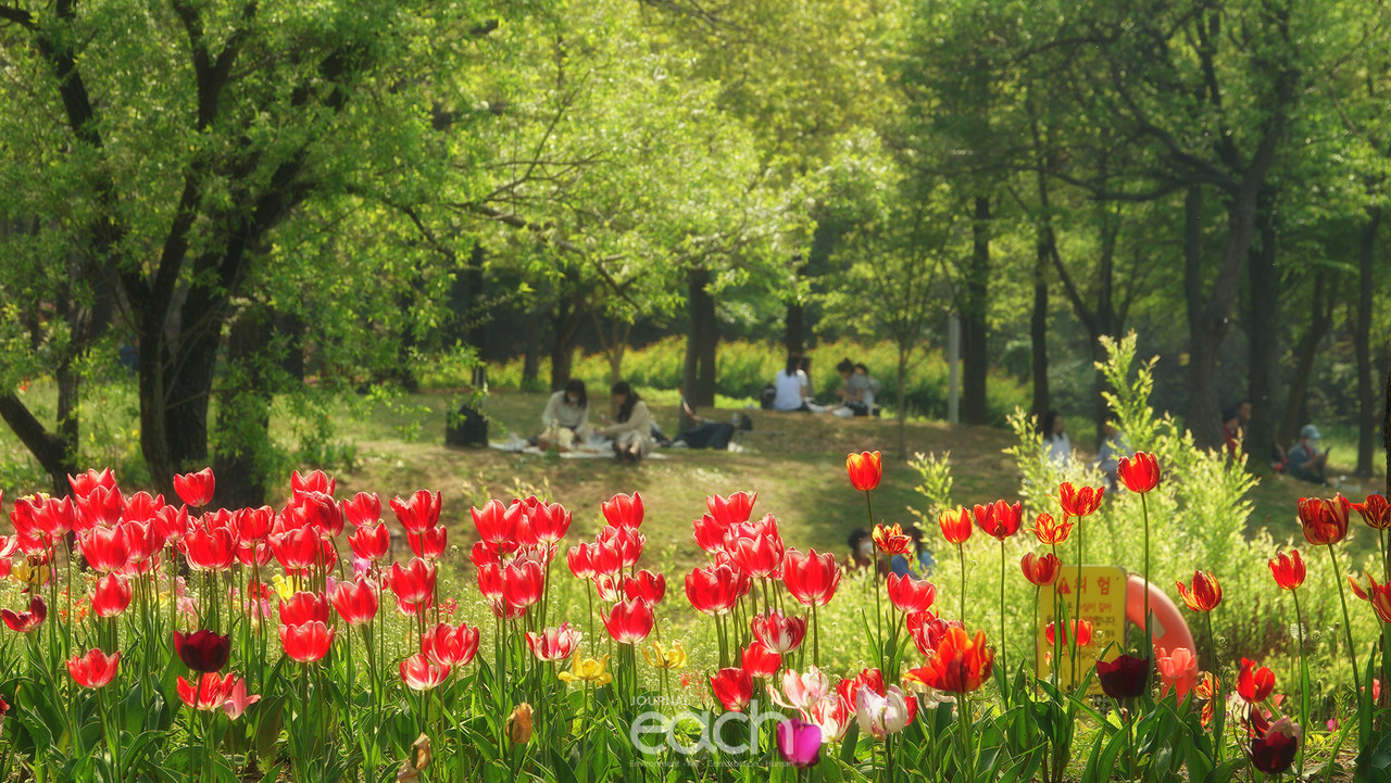 4월의 서울숲이 튜울립꽃으로 한창이다.