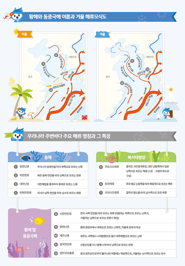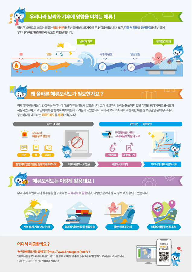 국립해양조사원은 동해를 비롯한 주변해역의 해류정보를 정확하게 파악하고 알리기 위해 2011년부터 2016년까지 6년 동안 학계, 연구기관 등과 함께 해류모식도를 제작하였고, 2018년부터는 중·고등학교 교과서에 게재하는 등 교육현장에서 활용할 수 있도록 했다. 특히, 2019년에는 국제 전문서적에 해류모식도 제작 방법과 과정을 수록하여 해류모식도 제작에 관한 국제적 기준을 제시하기도 했다.