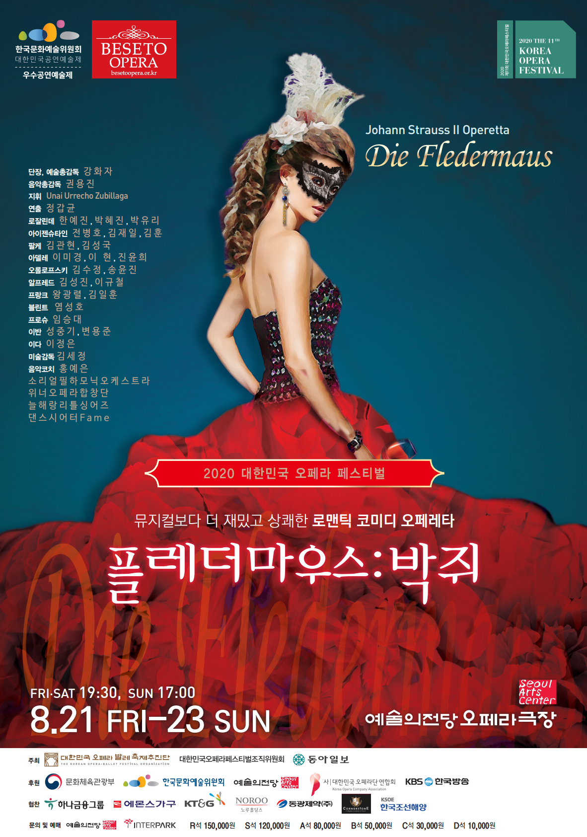 (사)베세토오페라단이 요한 슈트라우스 2세의 오페레타 <플레더마우스 : 박쥐> 전막을 8월 21일부터 23일까지 예술의 전당 오페라 극장 무대에서 공연한다.