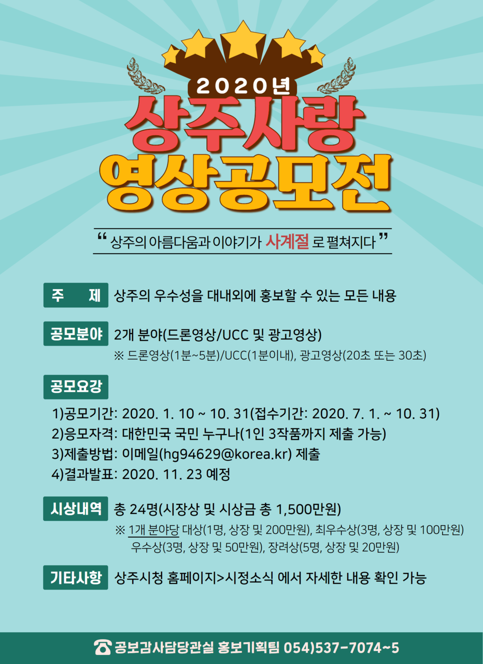 ○ 공 모 명: 상주의 사계절 아름다움과 이야기를 담다!「2020 상주사랑 영상 공모전」