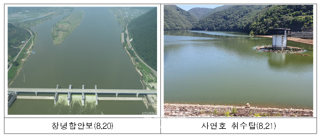 낙동강 호소 지점(덕동호·영천호·사연호)도 비로 인한 영양염류 유입과 폭염의 영향으로 녹조가 급격히 증가했다.
