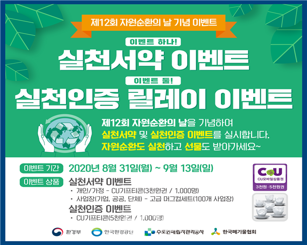자원순환 실천 플랫폼 홈페이지(http://www.recycling-info.or.kr/act4r)에서 자원순환 실천을 서약하거나, 자원순환 실천 플랫폼 홈페이지 및 인스타그램을 통해 자원순환 실천을 인증하면 추첨을 통해 머그컵 등 경품 지급