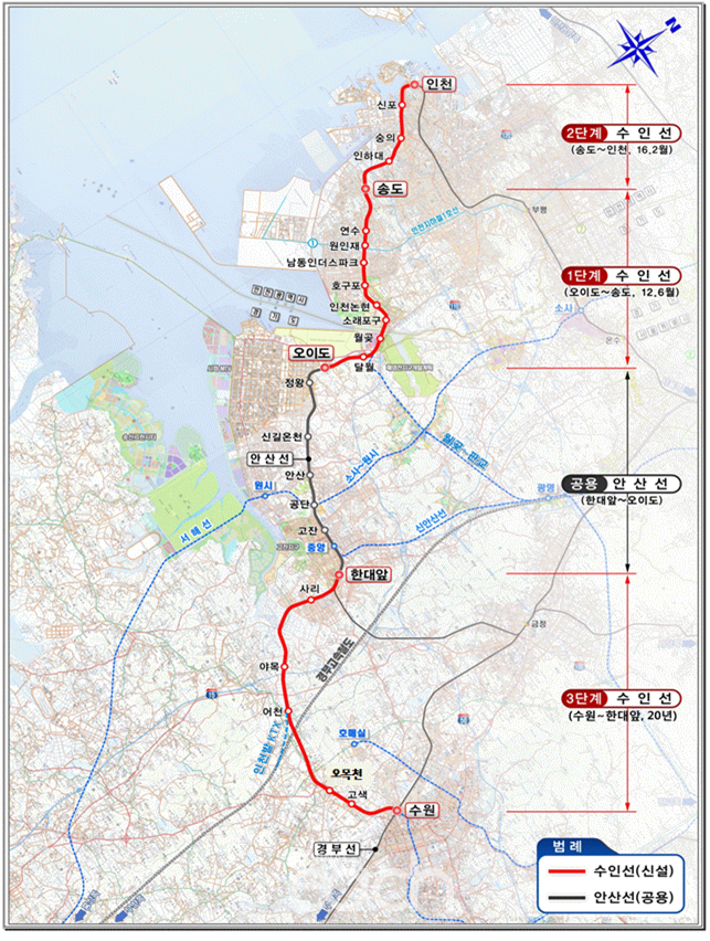 표준궤도의 광역철도로 개량하는 수인선 사업은 총사업비 2조 74억 원이 투입된 국책사업으로, 1995년 7월부터 2004년 5월까지 기본계획 및 설계용역을 거쳐, 2004년 12월 1단계 구간 공사를 시작하여 총 3단계로 나누어 시행되었다.