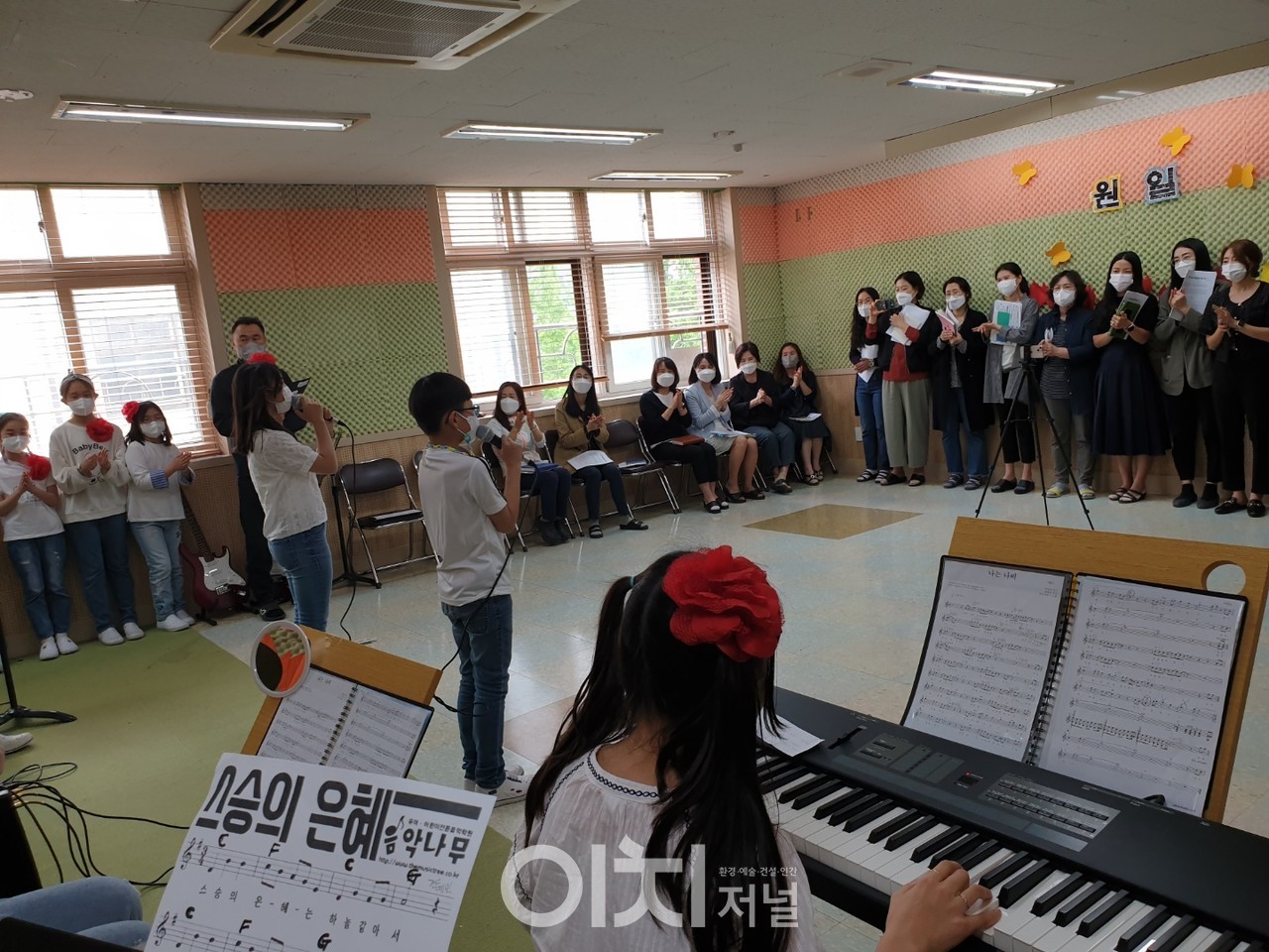 원일초등학교 동아리실에서 진행된 이번 공연에서는 ‘스승의 은혜’와 ‘나는 나비’ 등의 곡을 밴드 합주로 선보였다.