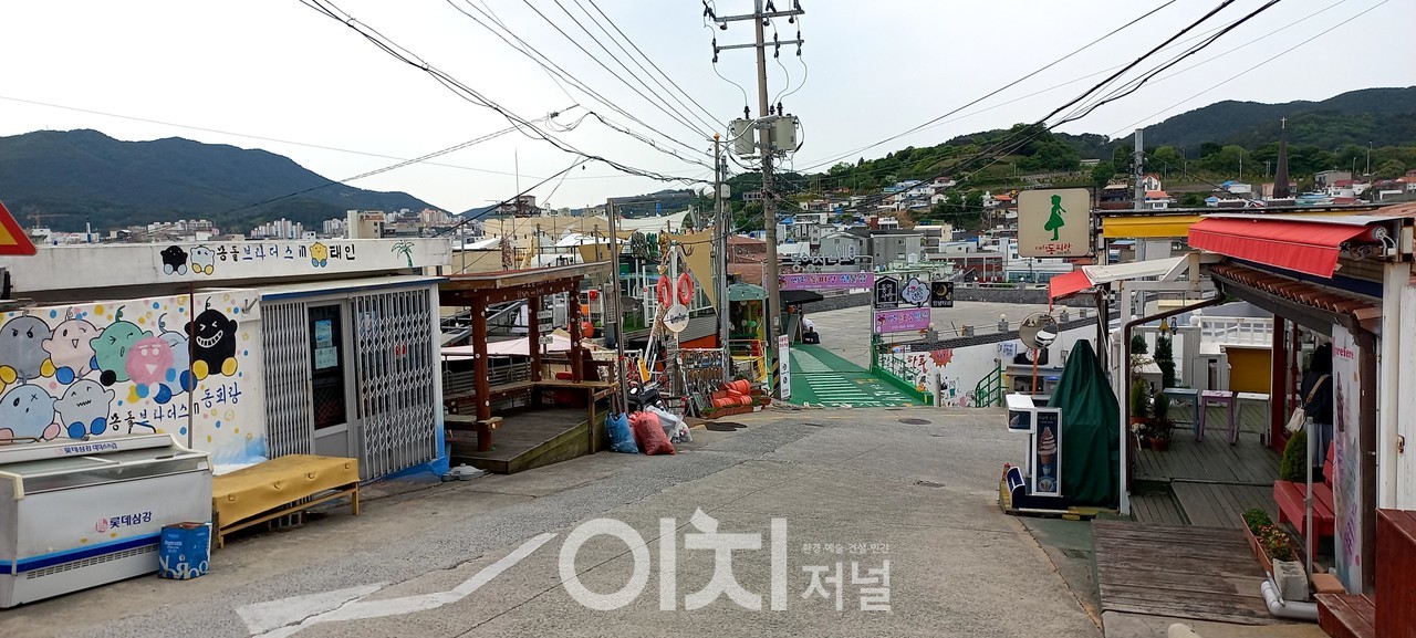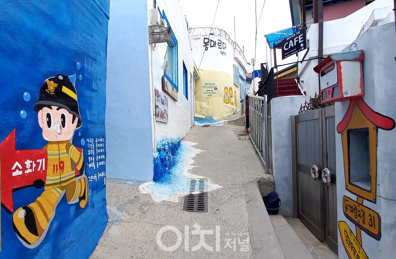 절벽의 집들을 리모델링하고 적극적으로 바다가 보이는 뷰를 강조했다. 그 유명한 동피랑이 됐다! 사업차 둘러보니 벼랑 길 위에 집들이 다닥다닥 붙었다.