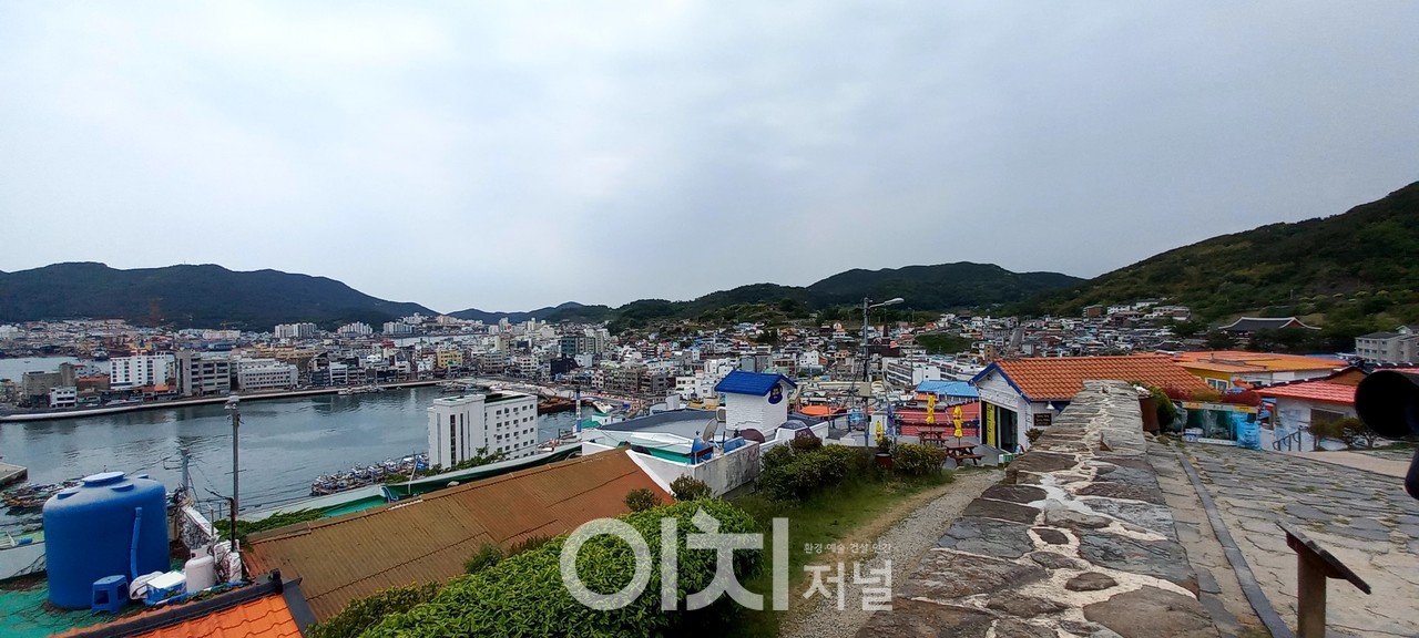 자동차로 여행하는 통영은 섬들을 많이 볼 수 있다. 전망대에 올라가서 사방을 살펴보니 명당이다. 사면이 모두 탁 트인 뷰가 자랑이다. 살아온 흔적이 묻어있는 건물들을 있는 그대로 수리해서 사람들의 감성을 자극한다.