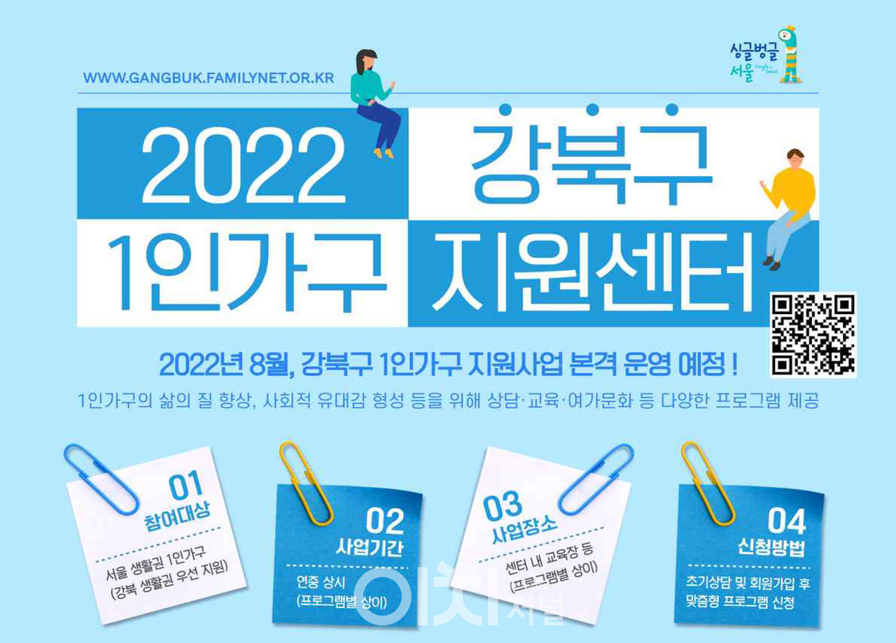 2022년 8월 개소한 강북구를 포함한 24개 자치구 1인가구지원센터에서 1인가구로서의 삶의 재미와 일상생활의 새로움을 더하는 온․오프라인 180개 프로그램을 기획하고 참여자를 모집하고 있다.