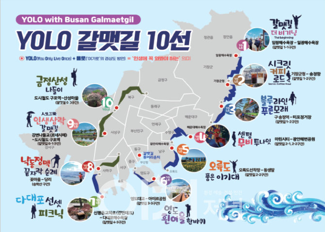 욜로(YOLO) 갈맷길이란, 부산에 오면 꼭 걸어봐야 하는 걷기 여행길로 코스당 반나절 이내로 완주할 수 있는 관광객 맞춤형 코스다.