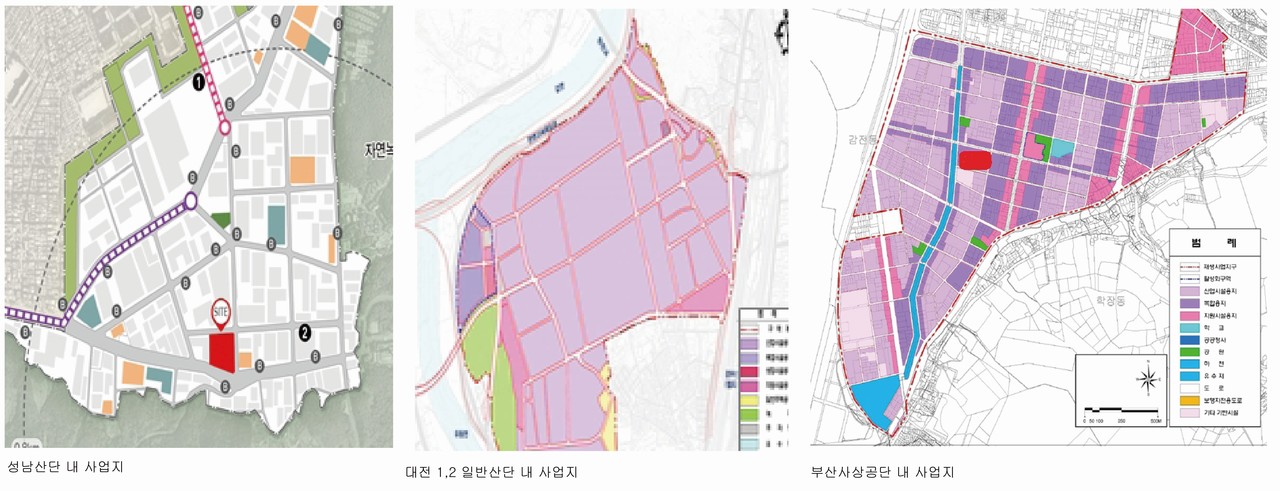 성남일반산업단지 및 대전1·2일반산업단지, 부산사상공단 내 업무용 부지, 휴·폐업 및 유휴부지 3곳 선정