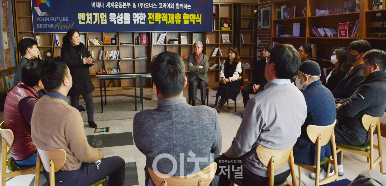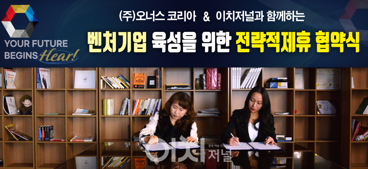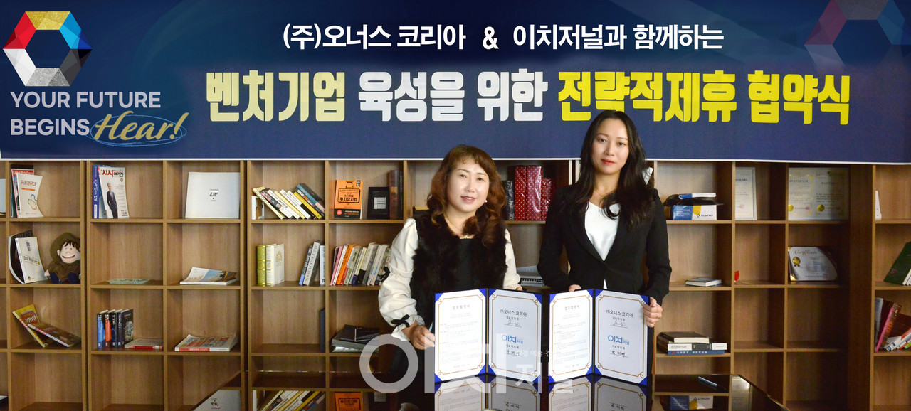 이치저널(대표 박미애)과 ㈜오너스코리아(대표 이동원)는 문화, 예술, 체육, 교육 분야의 벤처육성과 글로벌인재육성 등을 위해 12월 15일 동대문 비채나창업보육센터에서 협약식을 개최했다.