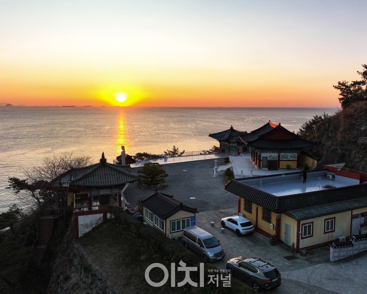 우리나라 남해안 여수 돌산에 위치하여 20여 미터가 넘는 해안 절벽 위에 자리하고 있다. 뿐만 아니라 경내에는 남해 바다를 향해 서 있는 해수관음상이 있다.
