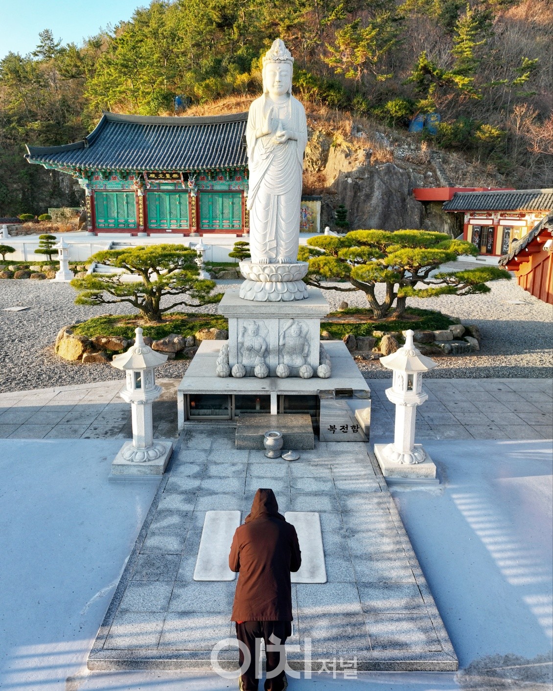 처음에는 이 지역의 해안 절벽에 석굴암과 같은 굴사를 건립하려고 계획하고 불사를 시작하였으나 절벽 위의 위험한 작업환경이나 암질 등의 문제로 일반 사찰 건립으로 계획 변경하여 1994년에 대웅전 부지 및 요사체(제1)를 완성하고, 1996년 승방 및 신도 활용공간으로 요사체(제2) 부분완성을 완성하였다.