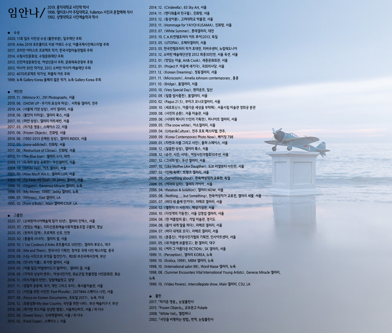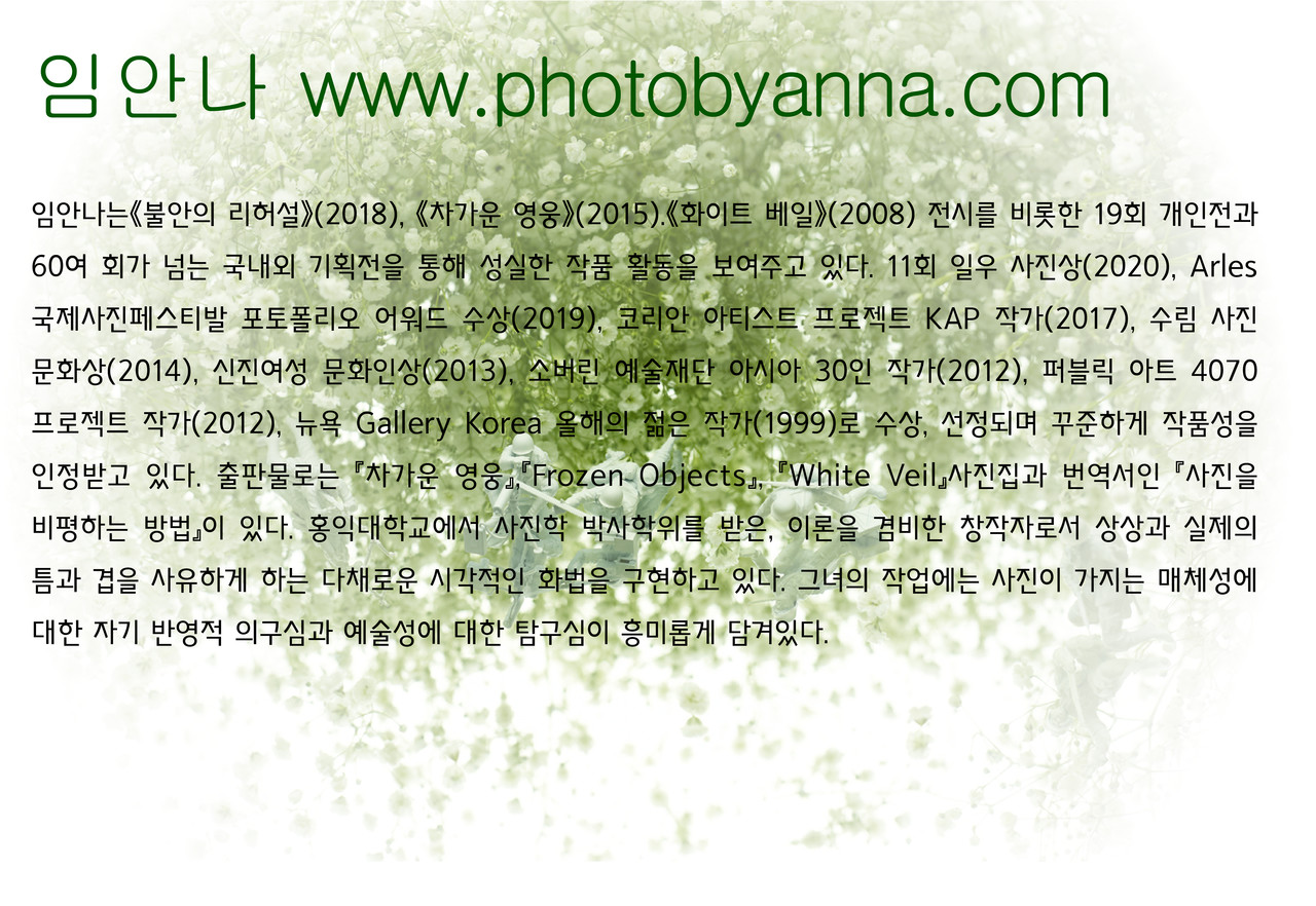 Romantic Soldiers #7 -Pigment Print 120X60cm 2011 Romantic Soldiers #9 -Pigment Print 120X60cm 2011 Romantic Soldiers #10-Pigment Print 120X60cm 2011 Romantic Soldiers #11-Pigment Print 120X60cm 2011 Romantic Soldiers #13-Pigment Print 120X60cm 2011 Romantic Soldiers #16-Pigment Print 120X60cm 2014 Romantic Soldiers #21-Pigment Print 120X60cm 2014 Romantic Soldiers #24-Pigment Print 120X60cm 2014 Last Scene #2 Pigment Print 120X180cm 2012 Last Scene #2 Pigment Print 120X180cm 2012 Last Scene #2 Pigment Print 120X180cm 2012 Last Scene #2 Pigment Print 120X180cm 2012 Last Scene #9 Pigment Print 60X120cm 2012 Last Scene #11 Pigment Print 60X120cm 2012 Frozen Objects#1 Pigment Print 60X120cm 2015 Frozen Objects#3 Pigment Print 60X120cm 2015 Frozen Objects#5 Pigment Print 60X120cm 2015 Frozen Objects#6 Pigment Print 60X120cm 2015 Frozen Objects#7 Pigment Print 60X120cm 2015 Frozen Objects#10 Pigment Print 60X120cm 2015 임안나_Frozen Objects#8_Pigment Print_60x120cm_2015 임안나_Frozen Objects#12_Pigment Print_60x120cm_2015