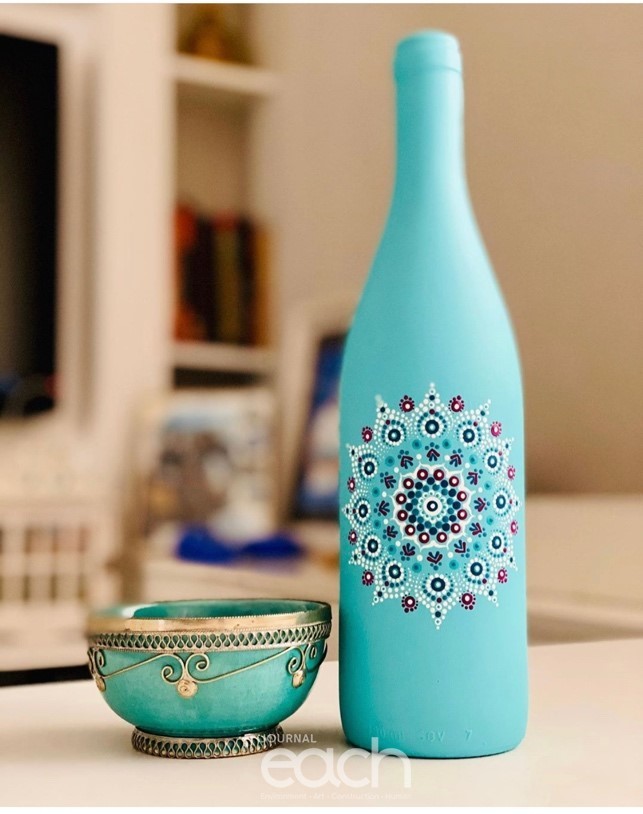 사진은 태평양 건너에 있는 브라질의 공방에 현지의 사람들이 모여서, 협업 속에 완성된 것이다. 병을 모아오는 사람, 병을 깨끗하게 씻고 정리하는 사람, 바탕색을 칠하는 사람, 문양 부분도 2~3명이 서로의 작업을 나누어서 최종 마무리를 한 것이다.